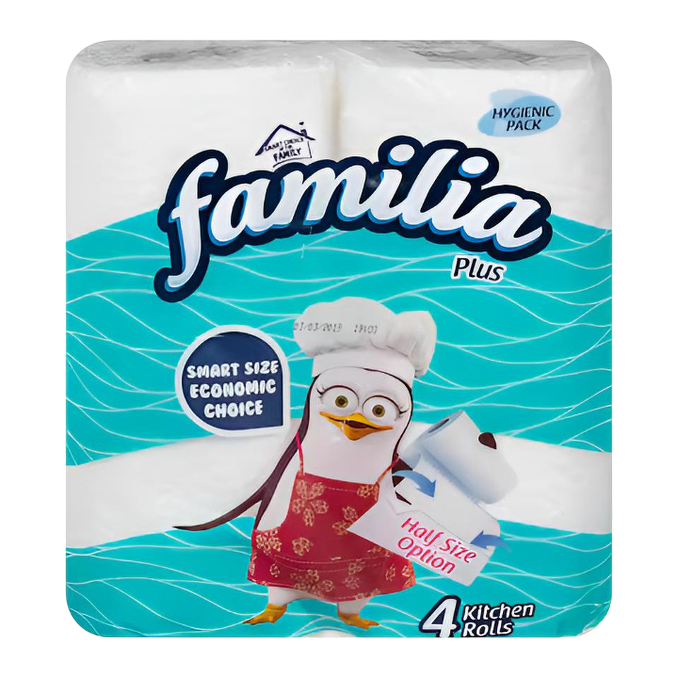 مناديل مطبخ من فاميليا – 4 بكرة. Familia Kitchen Towels – 4 Rolls, strong and absorbent for everyday kitchen use.